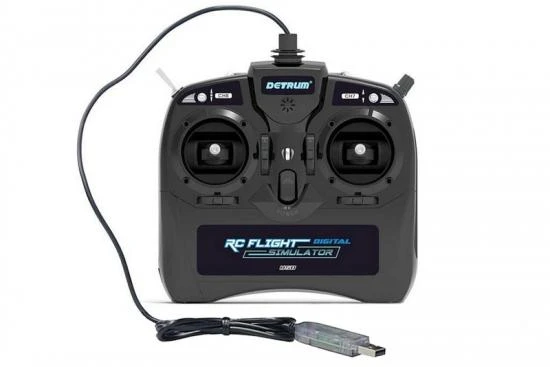 The Detrum 8-Channel USB R/C Handset is a great entry level R/C flight handset for use with flight simulator software to assist beginners by teaching them how to fly in the comfort of their home. Just one of the numerous advantages of using a RC flight simulator is that you can improve your stick skills without jeopardizing an actual aircraft. The flight dynamics in today’s simulator software is impressively realistic which is an obvious benefit for those just starting out in the hobby.